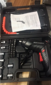 Julián Gómez 29 de Sep 2025Comprador verificadoFácil de usarLo compré sin muchas expectativas, pero me dejó sorprendido. Tiene fuerza de sobra para armar muebles, apretar tornillos duros y perforar madera sin problema. Además, el kit viene completísimo. Muy buena compra.